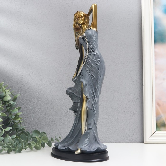 Сувенир полистоун "Девушка в синем вечернем платье со стразами" 11,8х16,5х37 см
