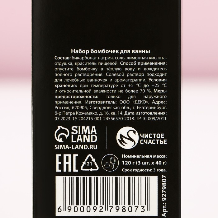Новый Год. Подарочный набор новогодний, бомбочки для ванны, 3 х 40 г