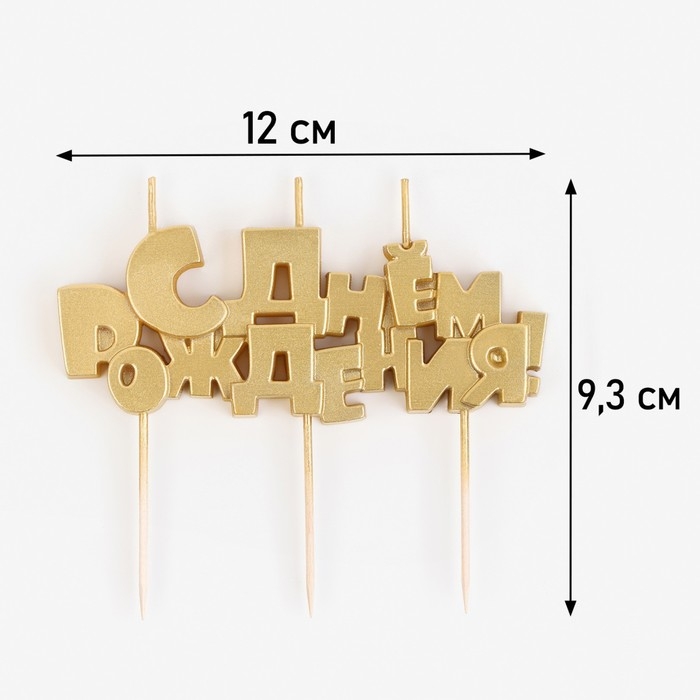 Набор свечей на шпажках "С Днем рождения", золотая, 5,3 см
