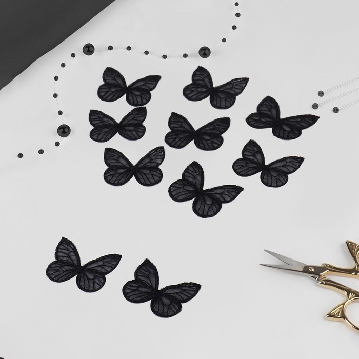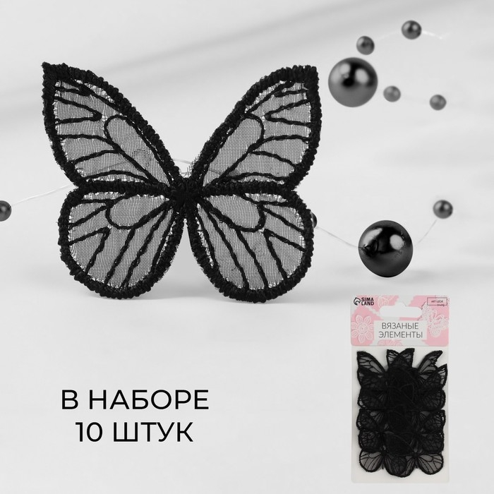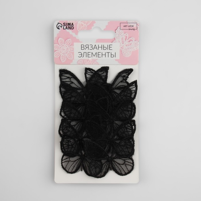 Вязаные элементы «Бабочки», 3,5 × 4 см, 10 шт, цвет чёрный