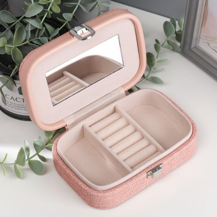 Шкатулка кожзам для украшений "Розовая" комбинированная 4,5х10х15 см