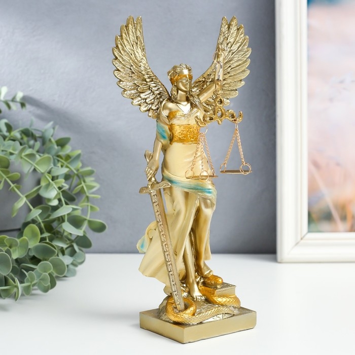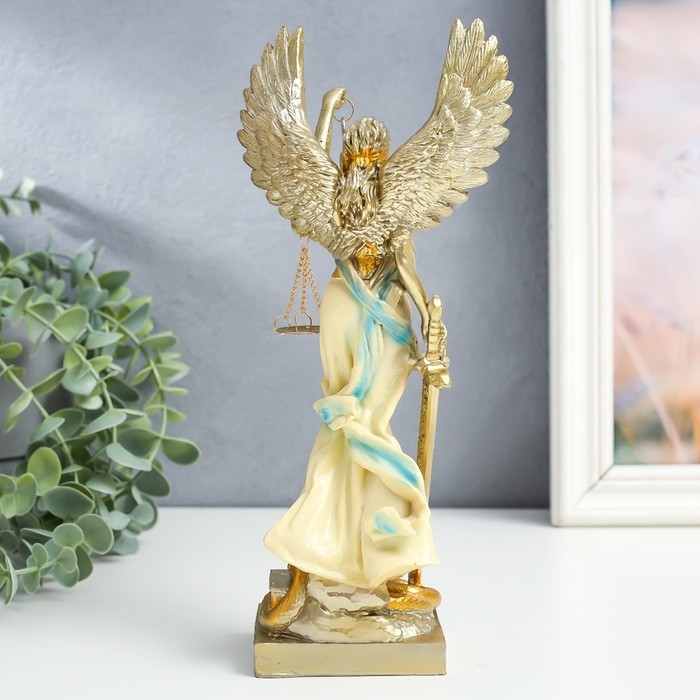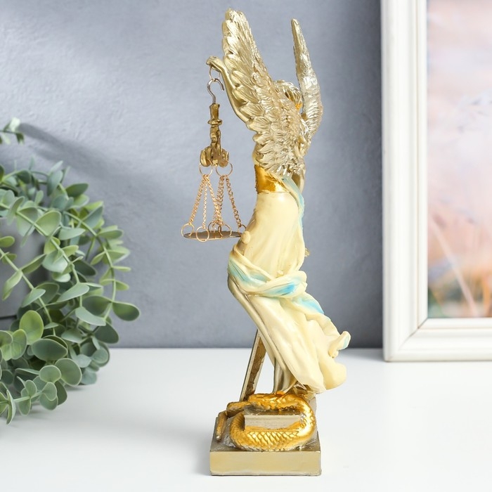 Сувенир полистоун "Богиня Фемида с крыльями - Правосудие" сливки с золотом 6х11х25 см