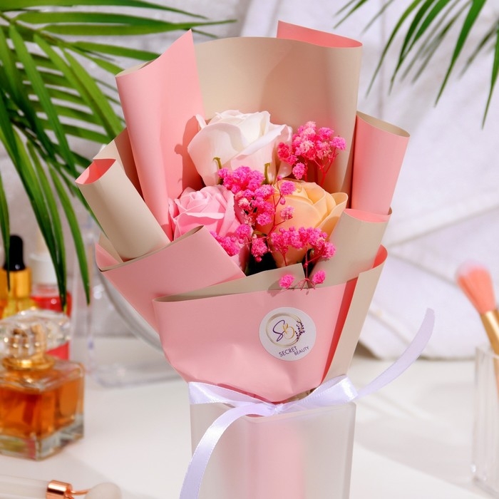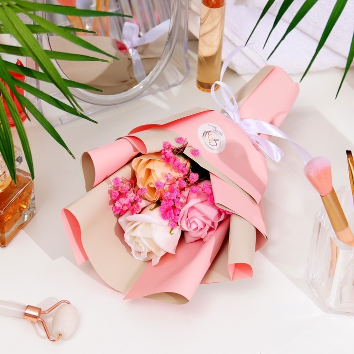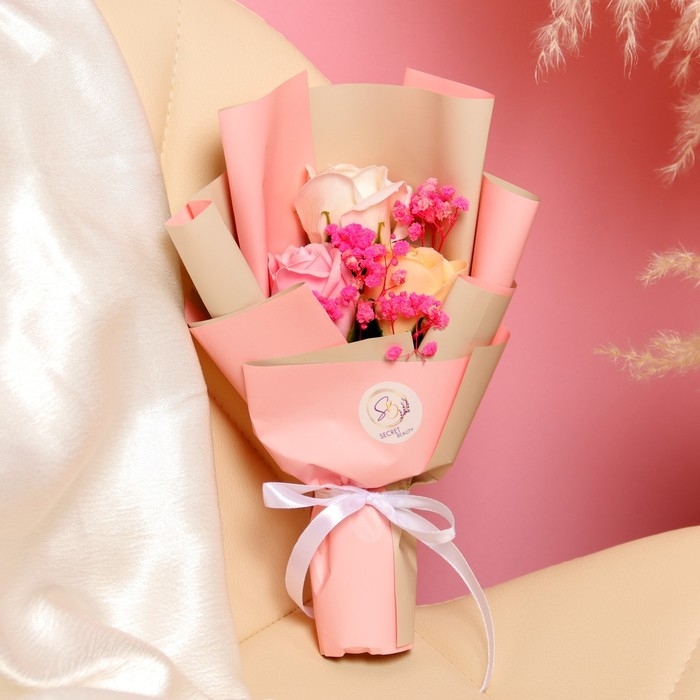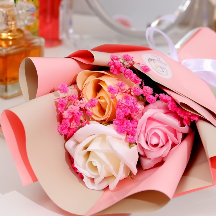 Благодаря точному повторению мелких деталей мыльные розы схожи с настоящими цветами. Композиция наполняет помещение тонким и ненавязчивым цветочным ароматом.