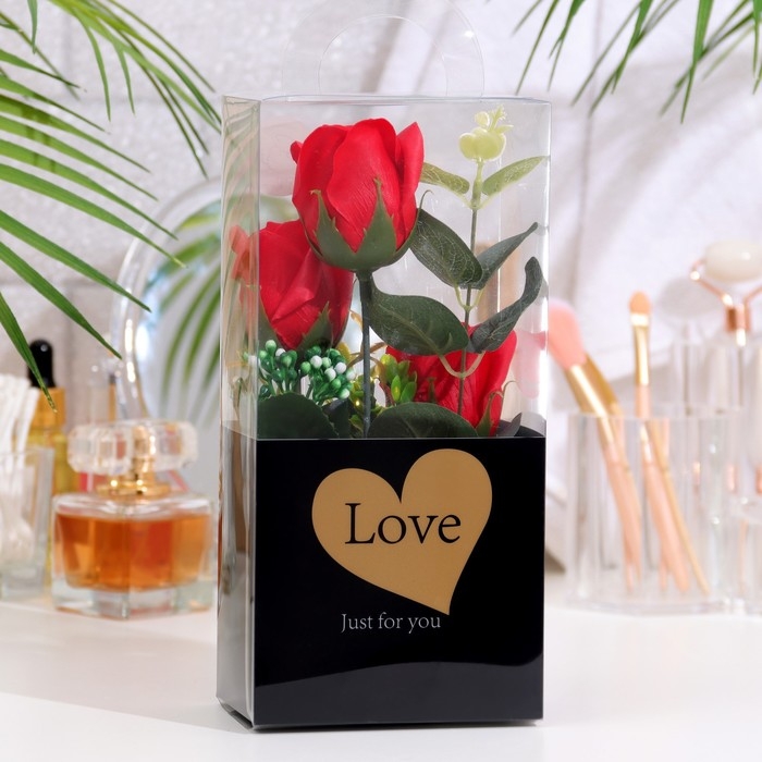Мыльные розы в коробке, красные, набор 3 шт