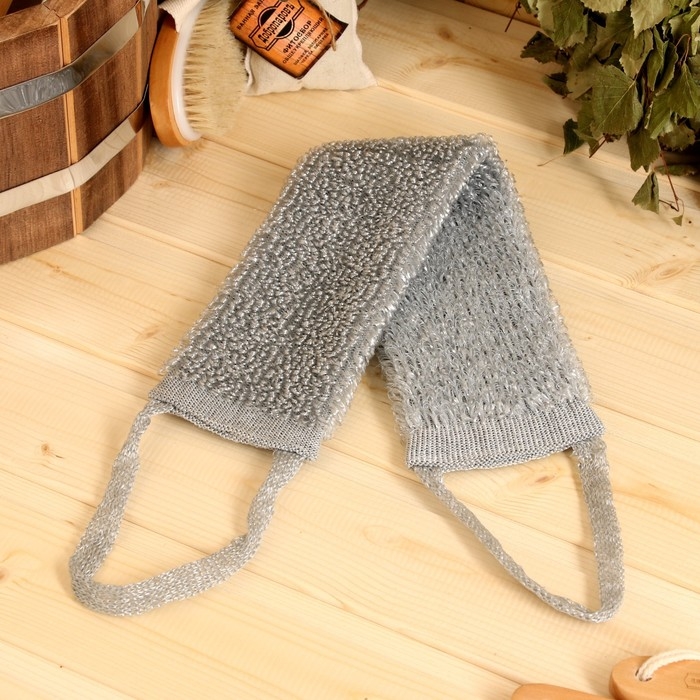 Мочалка банная с ручками "Пояс" серая (45 см без ручек) Добропаровъ