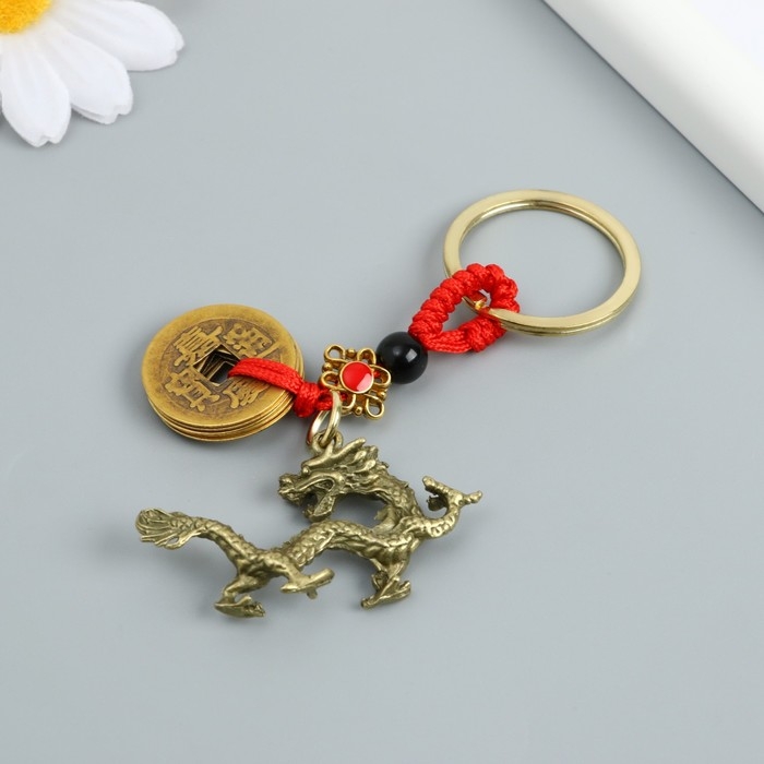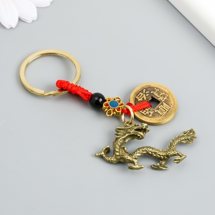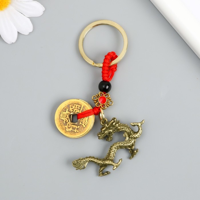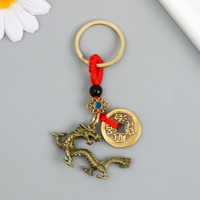 Брелок металл нэцке "Китайский дракон" 5 монет h=7,5 см