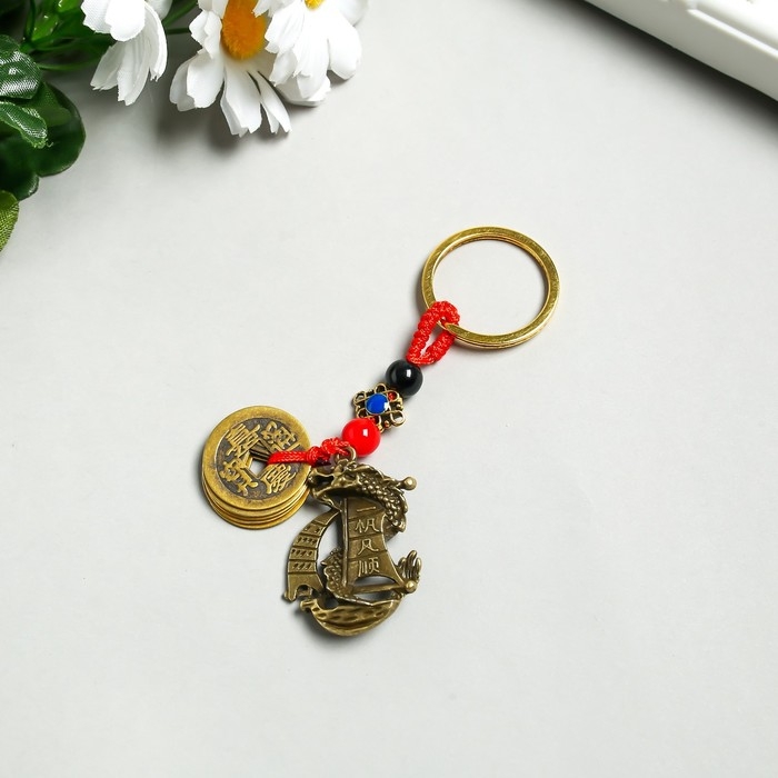 Брелок металл нэцке "Дракон на корабле" 5 монет h=8 см