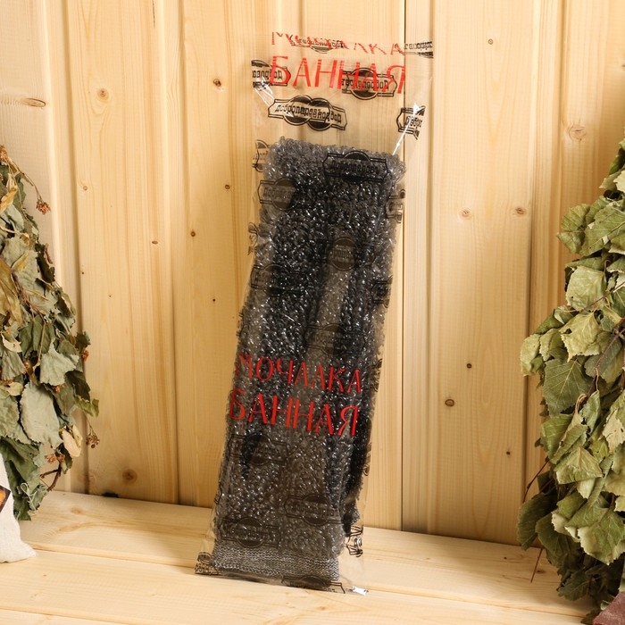 Мочалка банная мужская с ручками "Пояс" черная (60 см без ручек)