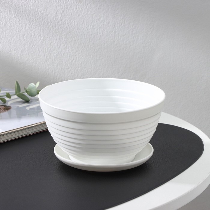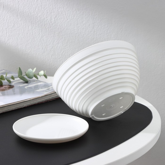 Горшок для цветов с поддоном «Алиса», 1 л, d=17 см, h=10 см, цвет белый