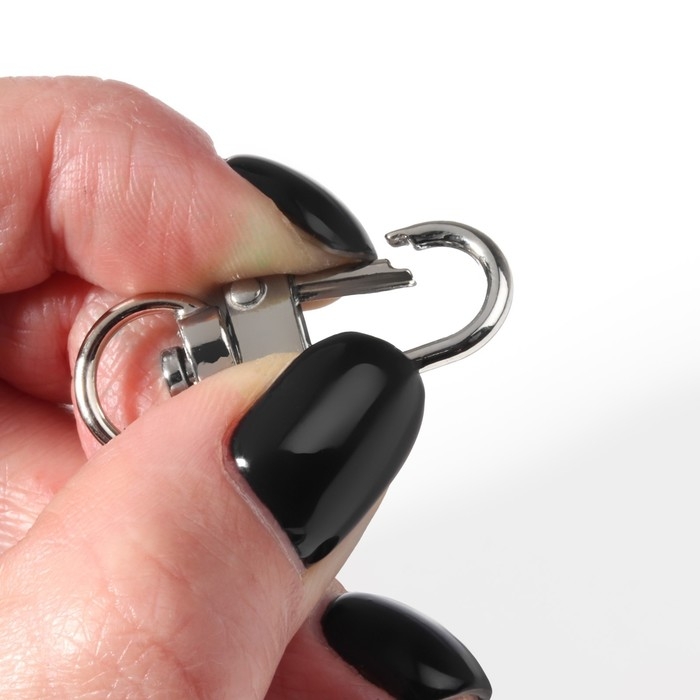 Металлический карабин предназначен для крепления ремней, ручек или декоративных элементов к сумке. Изготовлен из прочного металла, имеет гладкую поверхность и элегантный вид, что делает его не только функциональным, но и стильным элементом фурнитуры.
