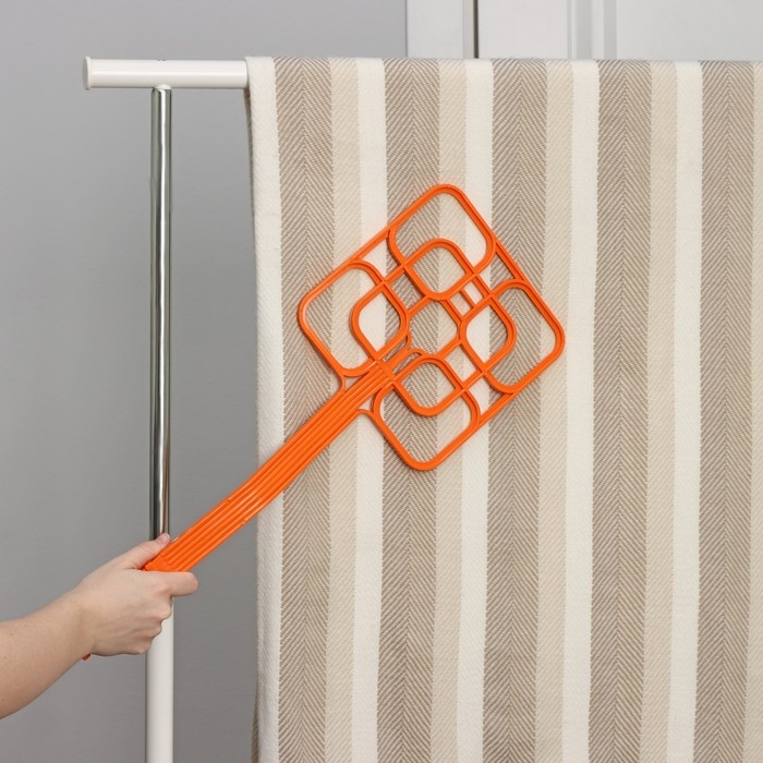 Пылевыбивалка из пластика предназначена для ковров и паласов. Удобная форма ручки и рифленая поверхность делают изделие удобным в эксплуатации. Усиленное место крепления ручки и ударной части обеспечивает прочность и долгий срок службы пылевыбивалки. Для удобного подвесного хранения в ручке имеется отверстие.