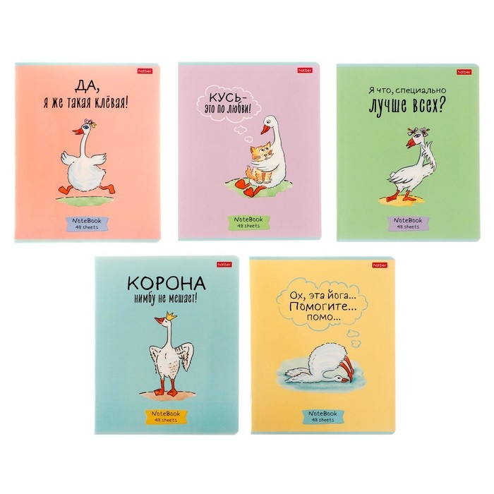 Тетрадь 48 листов в клетку "Гусь-веселюсь №1", обложка мелованный картон, скругленные углы, 5В, МИКС