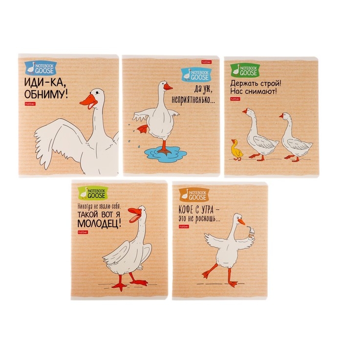 Тетрадь 48 листов в клетку "Гусь-веселюсь №2", обложка мелованный картон, скругленные углы, 5В, МИКС