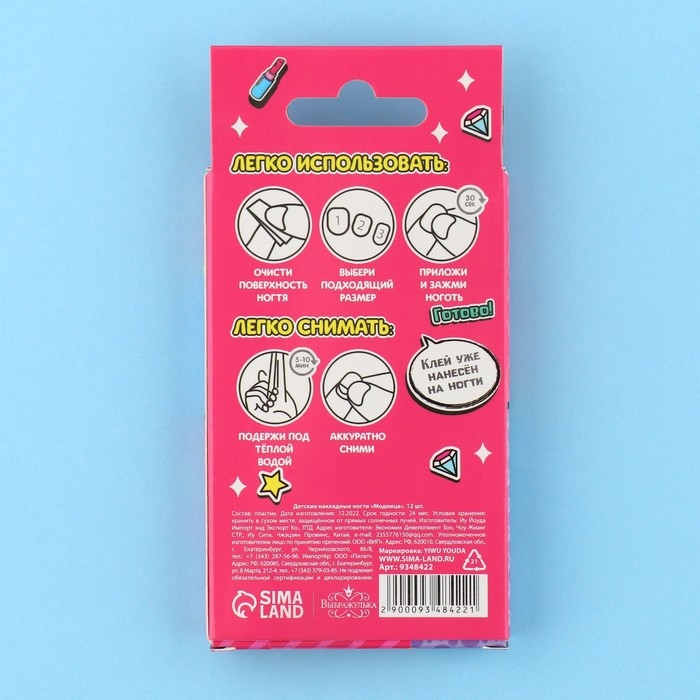Детские накладные ногти придуманы для самых ярких и стильных девчонок! Клей уже нанесён на ногти.
