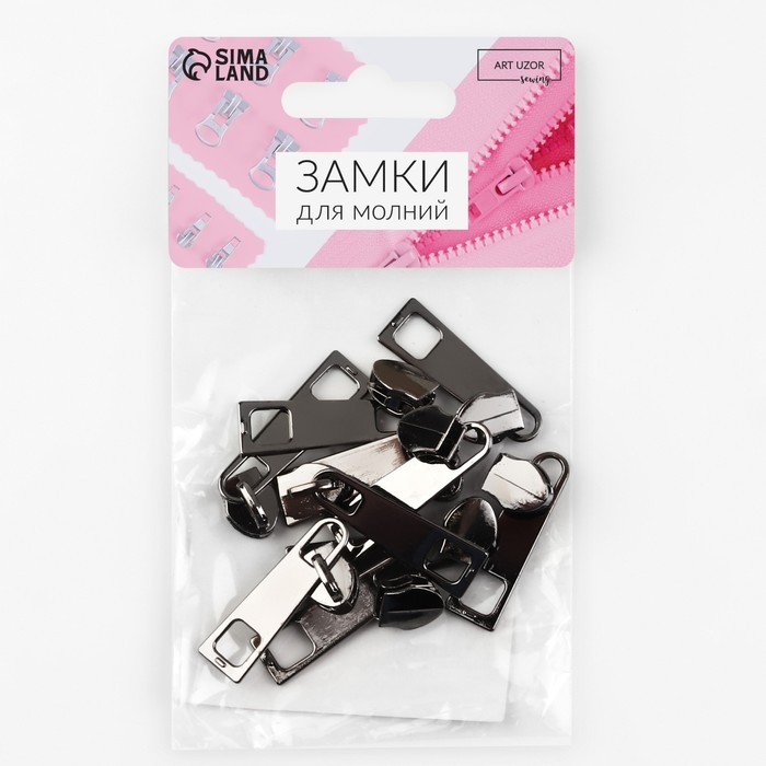 Бегунок галантерейный для молнии «Спираль», №5, 10 шт, цвет чёрный никель
