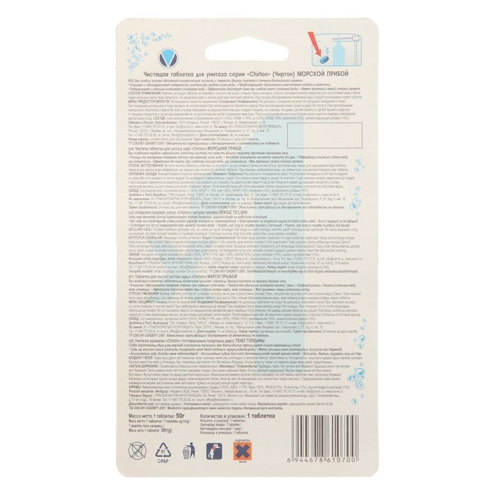Чистящие таблетки для унитаза Chirton "Морской прибой" созданы для поддержания гигиенической чистоты и свежести туалета в течение длительного времени.