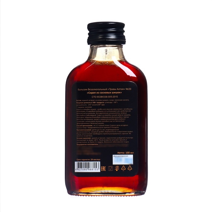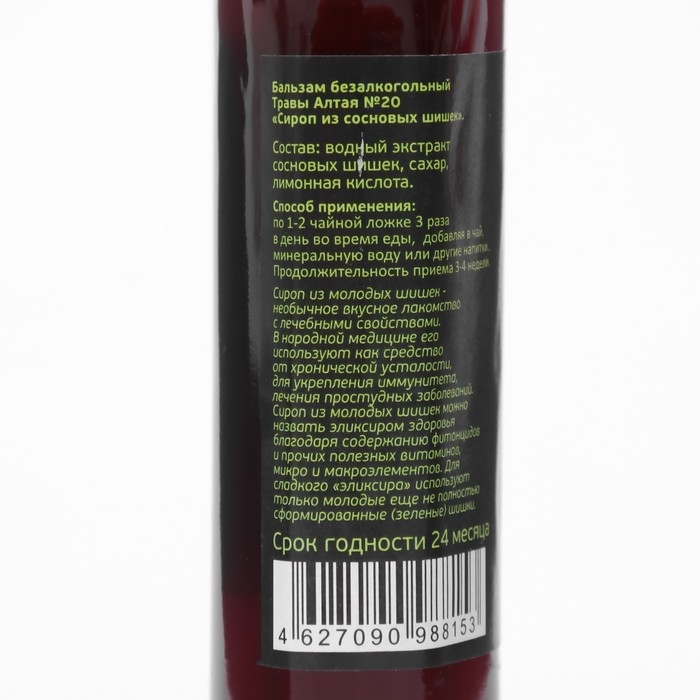 Состав: водный экстракт сосновых шишек, сахар, лимонная кислота.