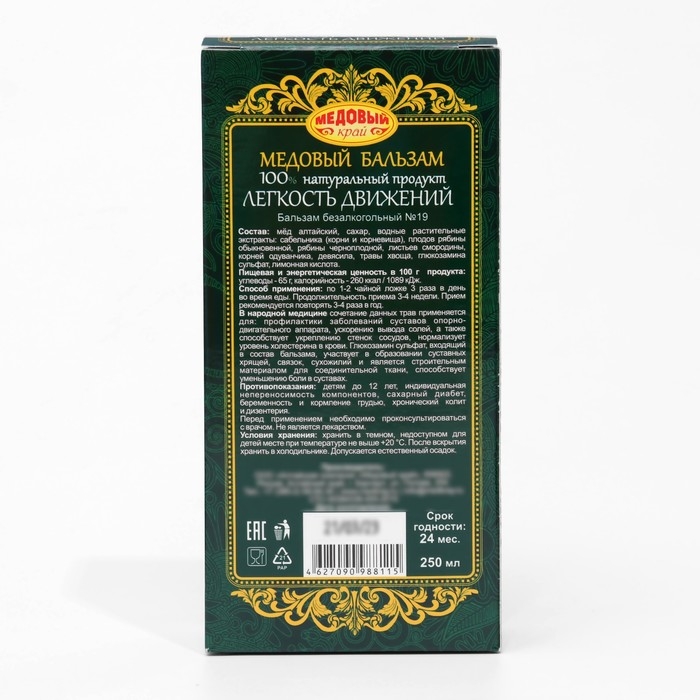 Алтайский медовый бальзам "Легкость движения", 250 мл, стекло