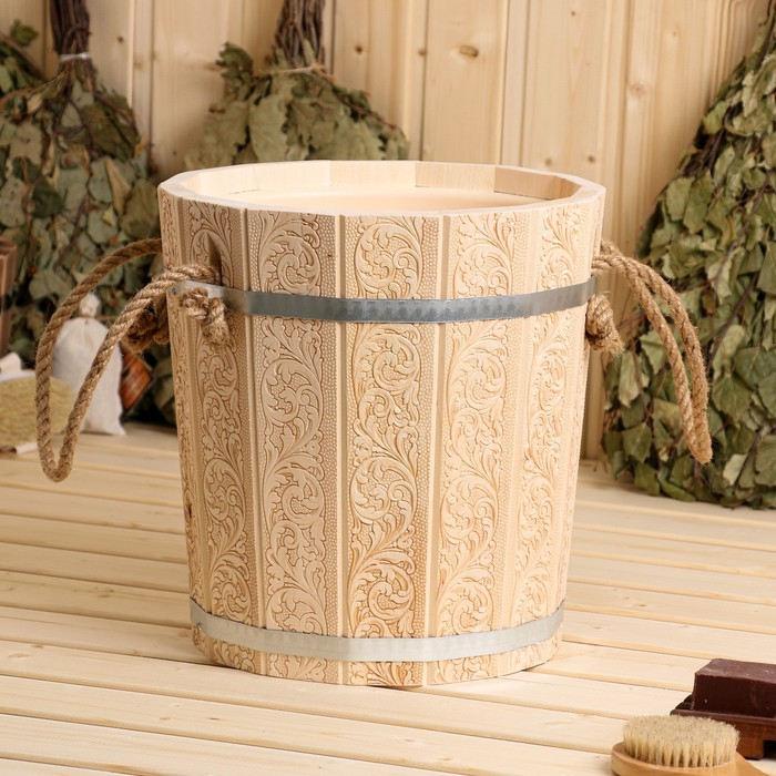 Запарник-ведро из липы, 10 л, с пластиковой вставкой, "Русские узоры"