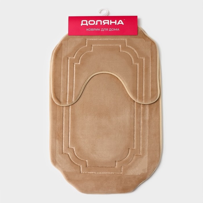 Коврики для ванной и туалета Доляна «Гранж», 2 шт: 40×50 см, 50×80 см, цвет бежевый