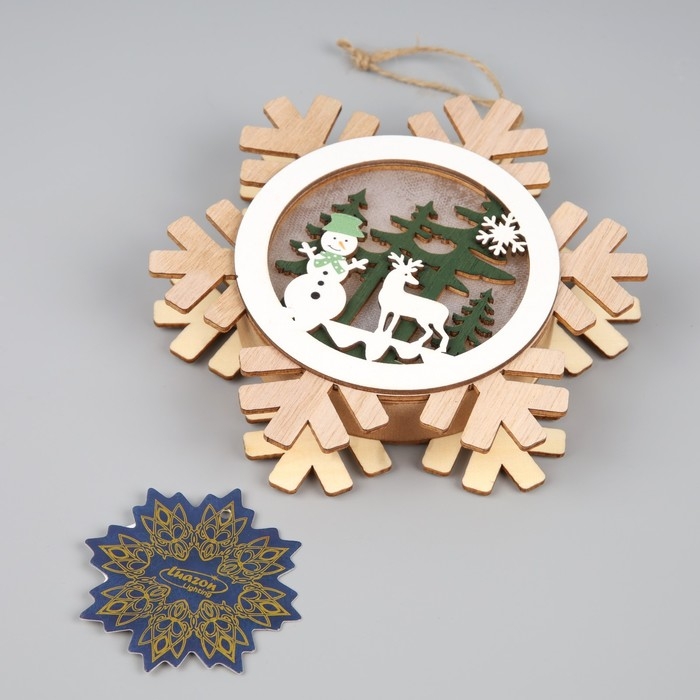 Ёлочная игрушка «Снеговик и олень», от батареек, свечение тёплое белое