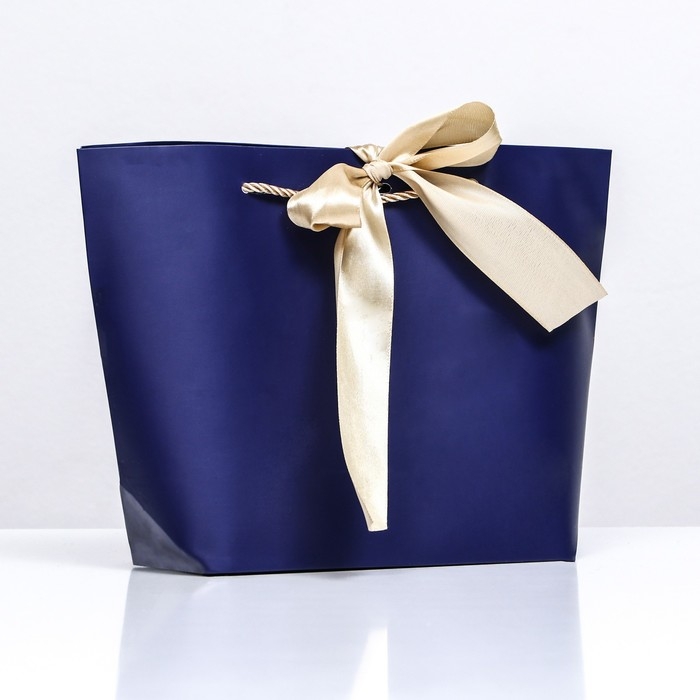 Пакет подарочный с лентой 19 х 20 х 9 см "Синий"