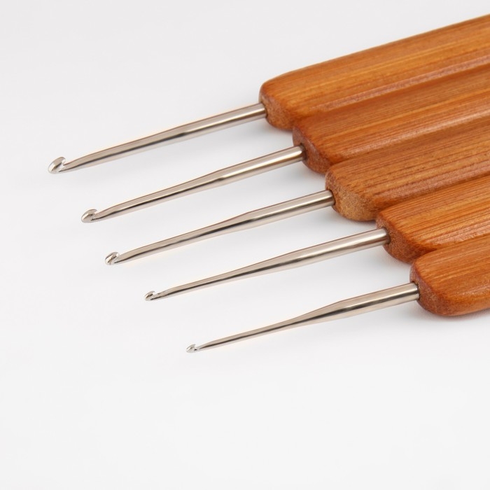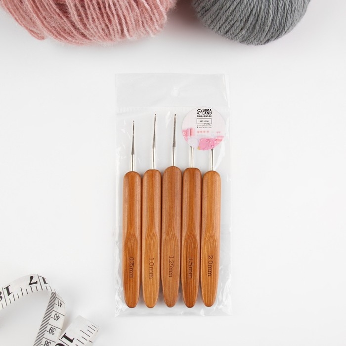 Набор крючков для вязания, с бамбуковыми ручками, d = 0,75/1/1,25/1,5/2 мм, 13,5 см, 5 шт