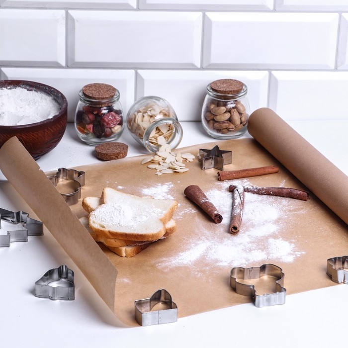 Пергамент силиконизированный Доляна, 38 см х 50 м, коричневый, жиростойкий