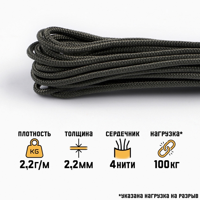 Паракорд 275 "Мастер К." нейлон, олива, d - 2,2 мм, 10 м