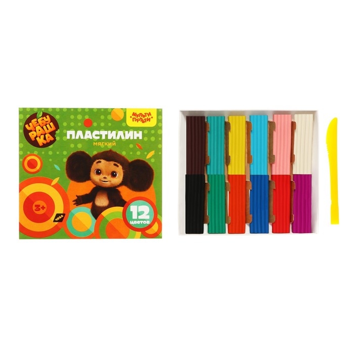Пластилин Мульти-Пульти "Чебурашка", 12 цветов, 144г, со стеком, картон