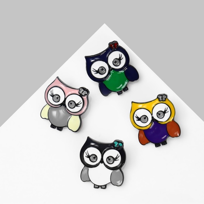 Брошь «Птица» совунья, цвет МИКС в чёрном металле (неделимая фасовка 12 шт., цена за шт.)