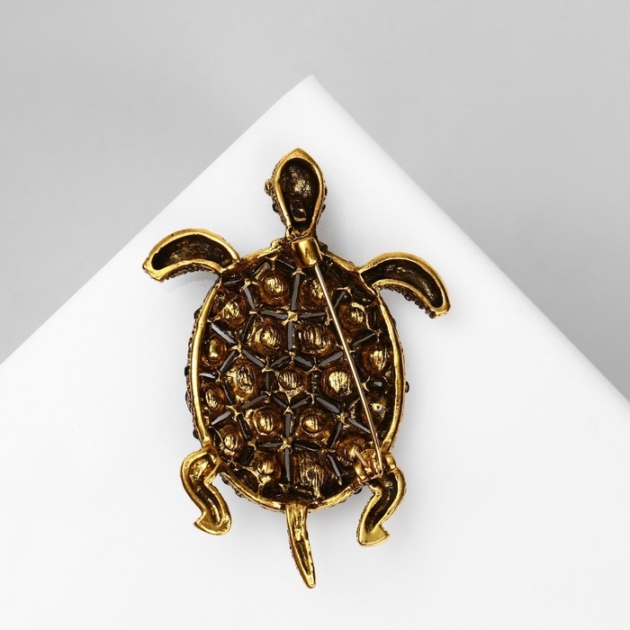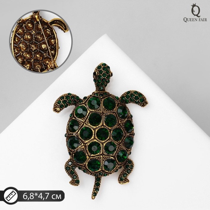 Брошь «Черепаха» с хвостиком, цвет изумруд в чернёном золоте