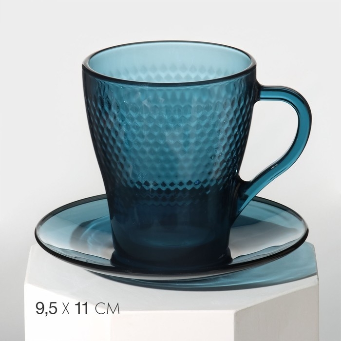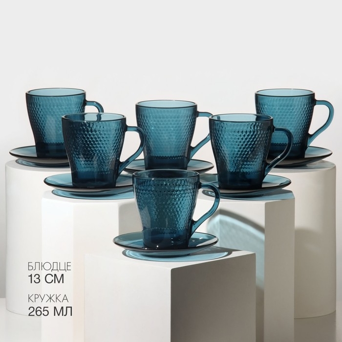 Чайный стеклянный набор «Идиллия», 12 предметов: кружка 265 мл, 6 шт, блюдце d=13 см, 6 шт, цвет лондон топаз