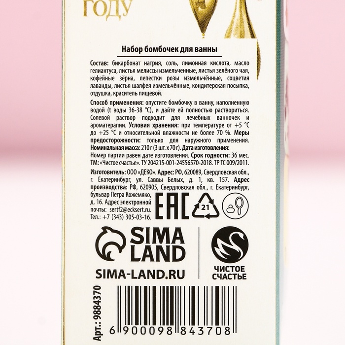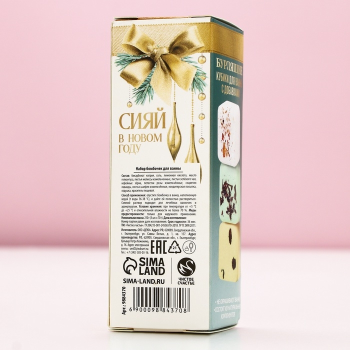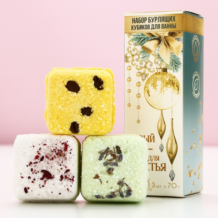 Подарочный набор косметики «Новый Год - время для счастья», бомбочки для ванны с добавками, 3 х 70 г, ЧИСТОЕ СЧАСТЬЕ