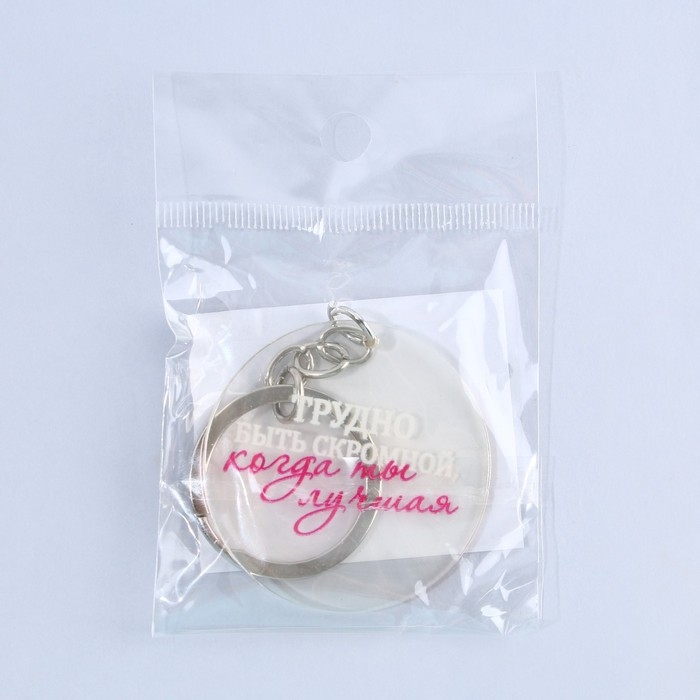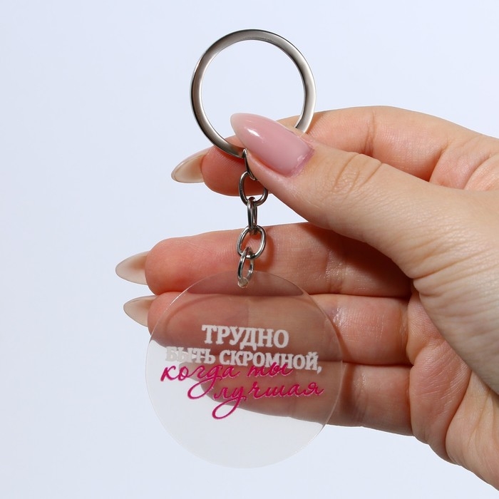 Брелок для ключей акриловый с приколом «Трудно быть скромной», диам. 4,5 см