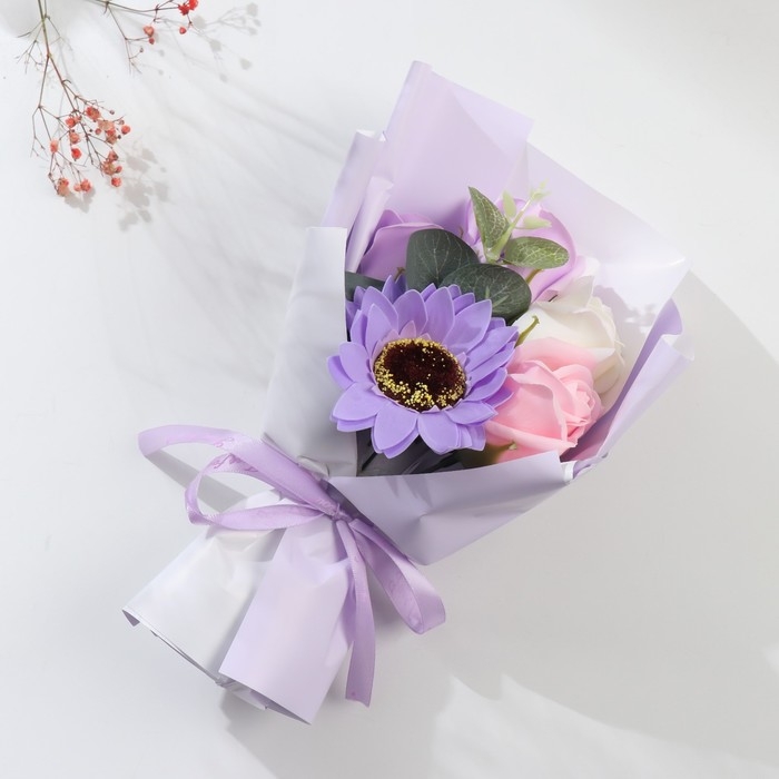 Букет из мыльных лепестков "Сиреневый туман" 11х8х25 см