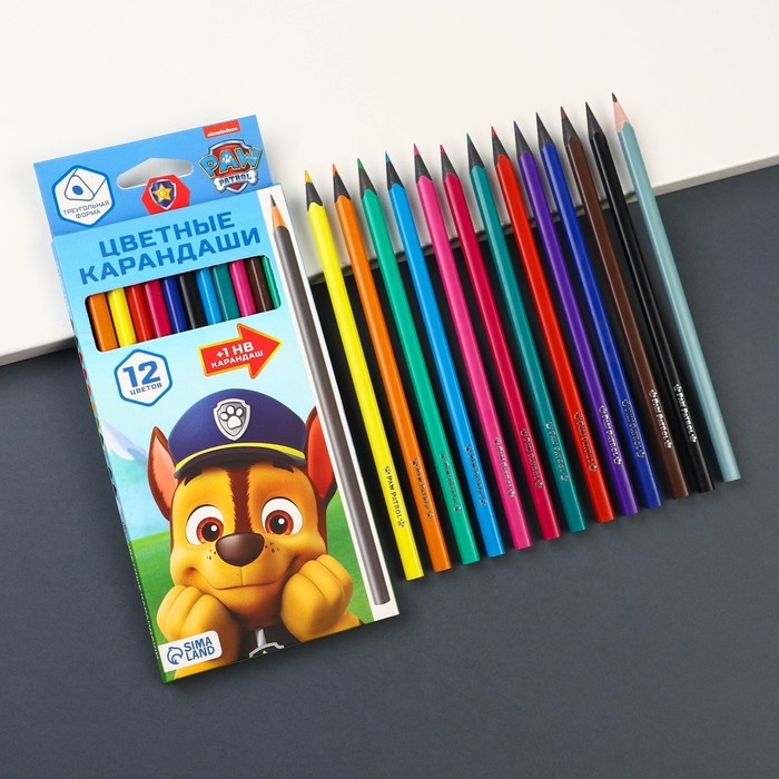 Цветные карандаши, 12 цветов, трехгранные, Щенячий патруль
