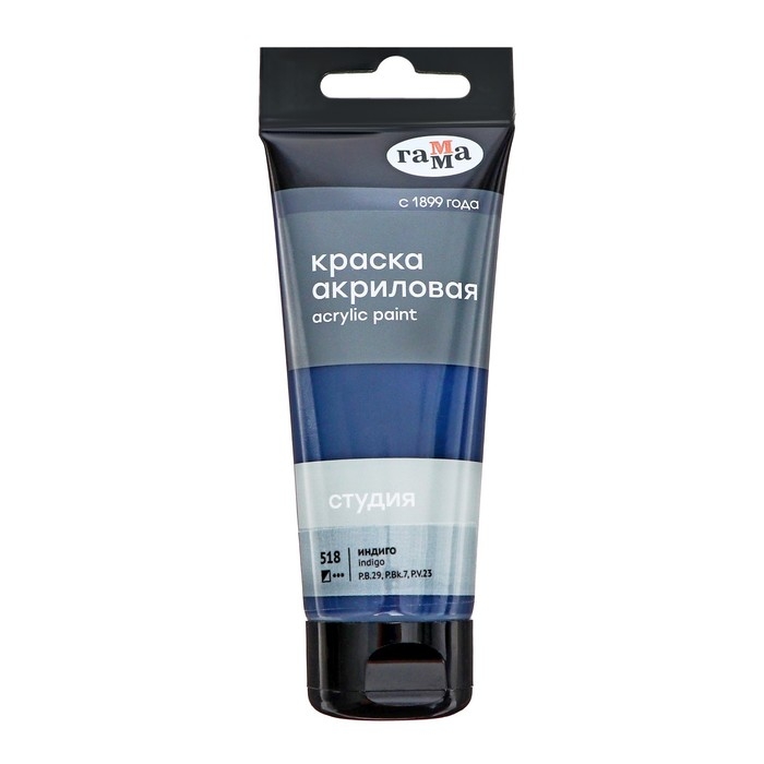 Краска акриловая художественная туба 75 мл, Гамма "Студия" №518 индиго, 280220518