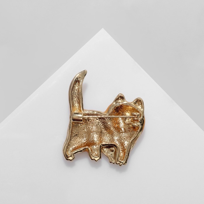 Брошь "Кот" домашний, цвет бело-коричневый в золоте