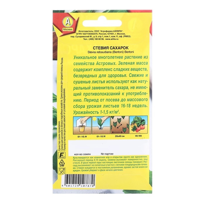 В условиях средней полосы России Стевия не зимует, поэтому выращивать её можно либо как комнатное растение, либо как растение открытого грунта с зимним хранением корневища рассадным способом.