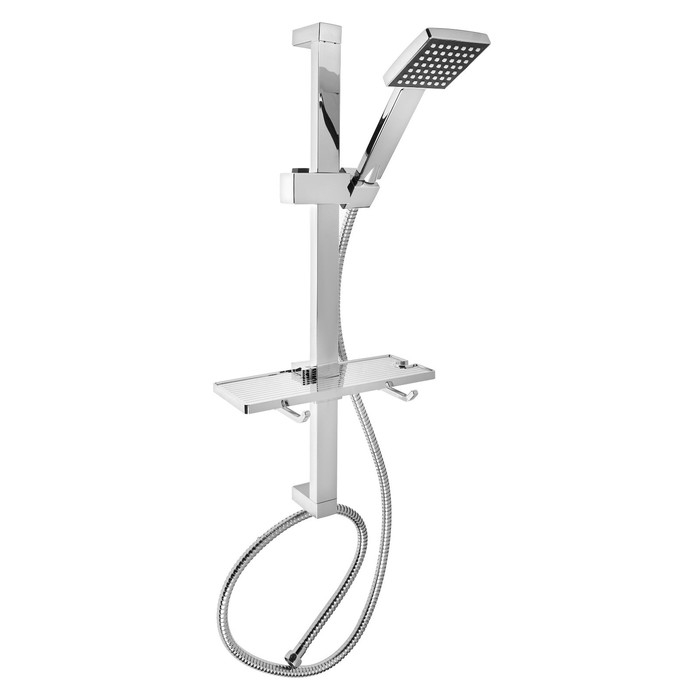 Набор для душа ZEIN H04, квадратный, стойка. мыльница и держатель, шланг 150 см, лейка, хром 97549
