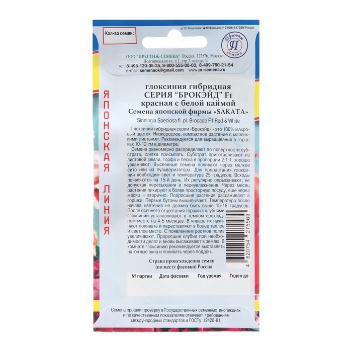 Семена цветов Глоксиния "Императрица", 4 шт.