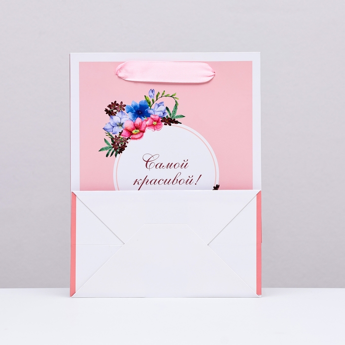 Пакет ламинированный вертикальный "Самой красивой, цветочки", 18 х 23 х 10 см