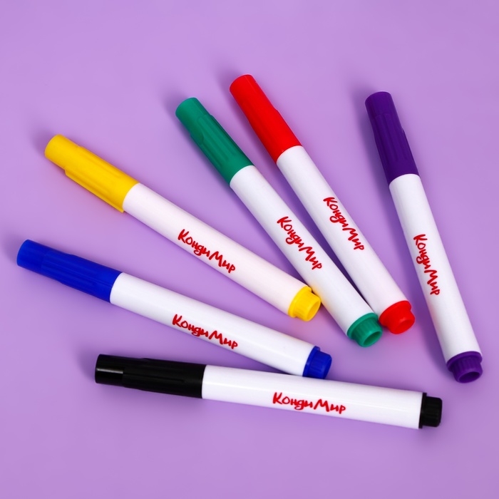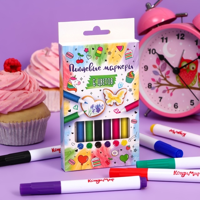 Набор пищевых маркеров "Кондимир" - это отличная идея для кондитерского декора на любой праздник Фломастеры имеют особую форму и текстуру, что обеспечивает легкость работы и точность линий. Уникальный стержень позволяет имитировать мазки киски. За счет мягкого наконечника кисти фломастеры идеально подходят для росписи плотных поверхностей, позволяют делать тонкие, а также толстые линии и различные узоры.
