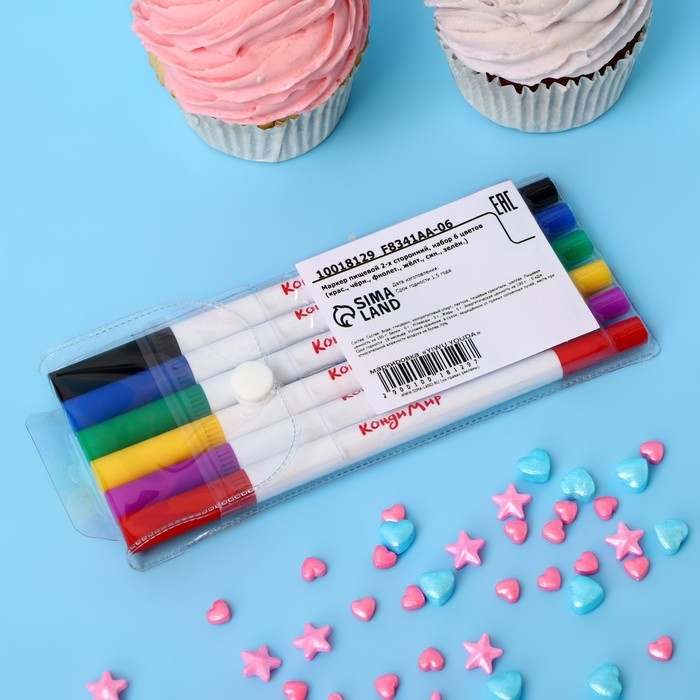 Маркер пищевой 2-х сторонний, набор из 6 цветов