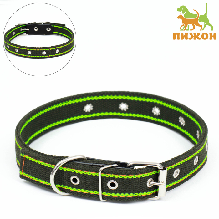 Ошейник брезентовый на фетре, 62 х 2,5 см, ОШ 30-55 см, тёмно-зелёный
