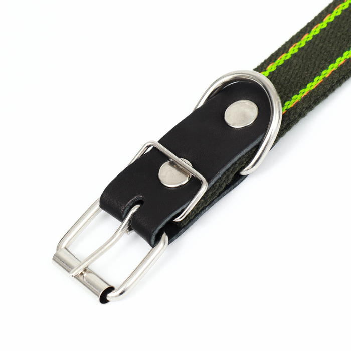 Ошейник брезентовый безразмерный двухслойный, хаки/зелёный, 67 х 3 см, ОШ до 55 см