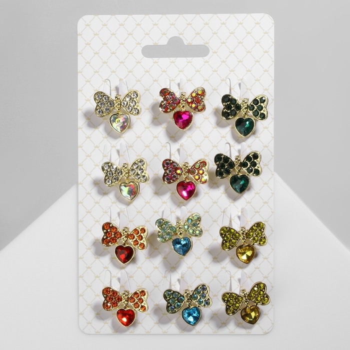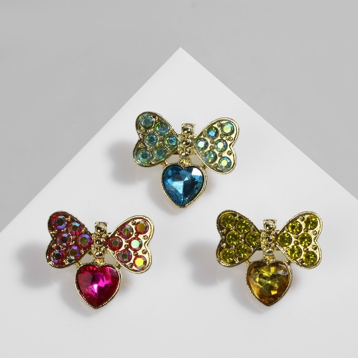 Брошь «Сердце» с бантиком, цвет МИКС в золоте (неделимая фасовка 12 шт., цена за шт.)
