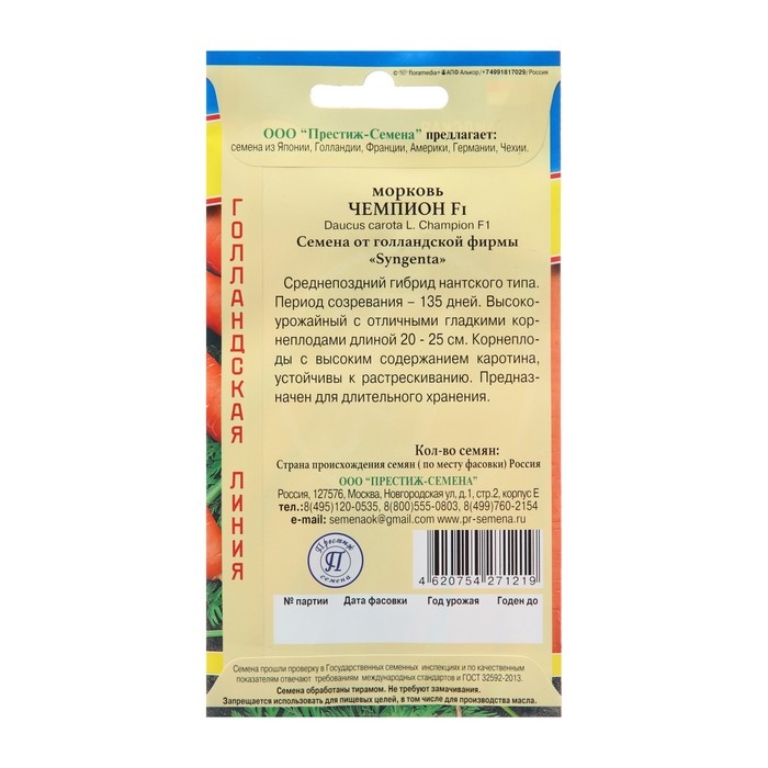 Семена Морковь "Чемпион" F1, 0.5 г