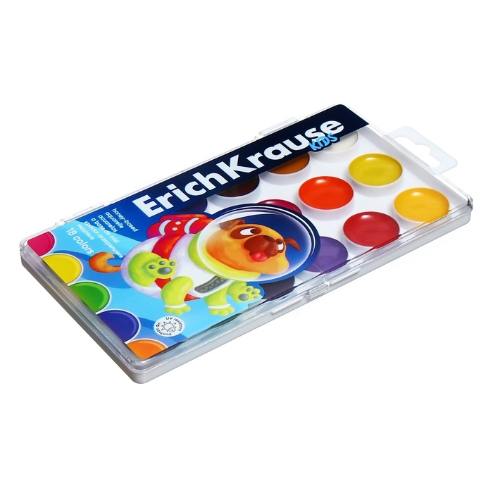 Акварель 18 цветов, ErichKrause Kids Space Animals, медовая, с УФ защитой яркости, пластиковая коробка, европодвес
